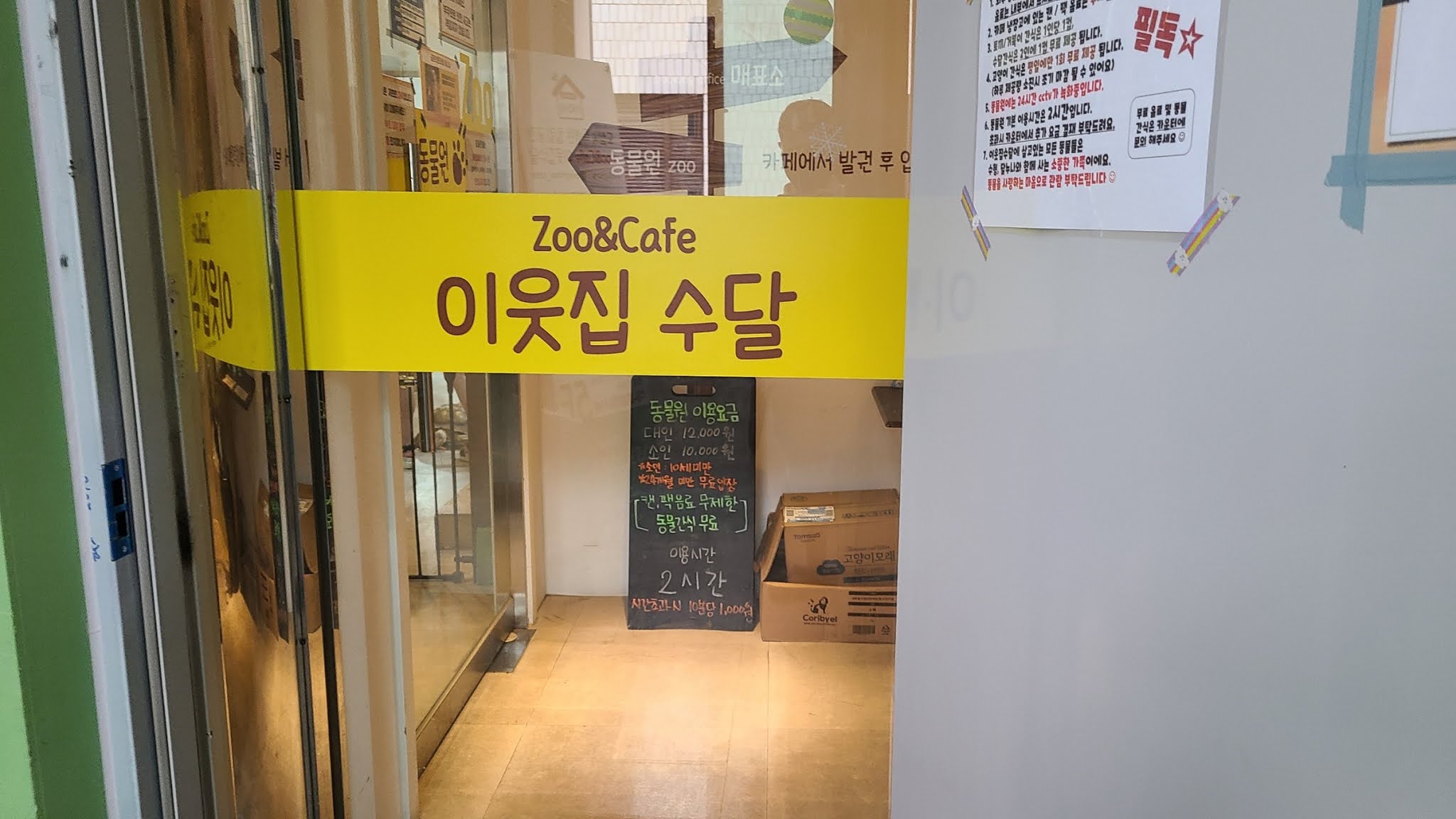 고양이들이 탈출 할 수 있으니 문을 꼭 닫아 달라고 써져 있습니다. 보통 고양이 까페도 만원 가까이 입장료를 받는데 여기서는 고양이 외에도 진짜 다양한 동물들을 실내에서 만지고 먹이주고 같이 시간 보낼 수 있는 장점이 있었습니다.