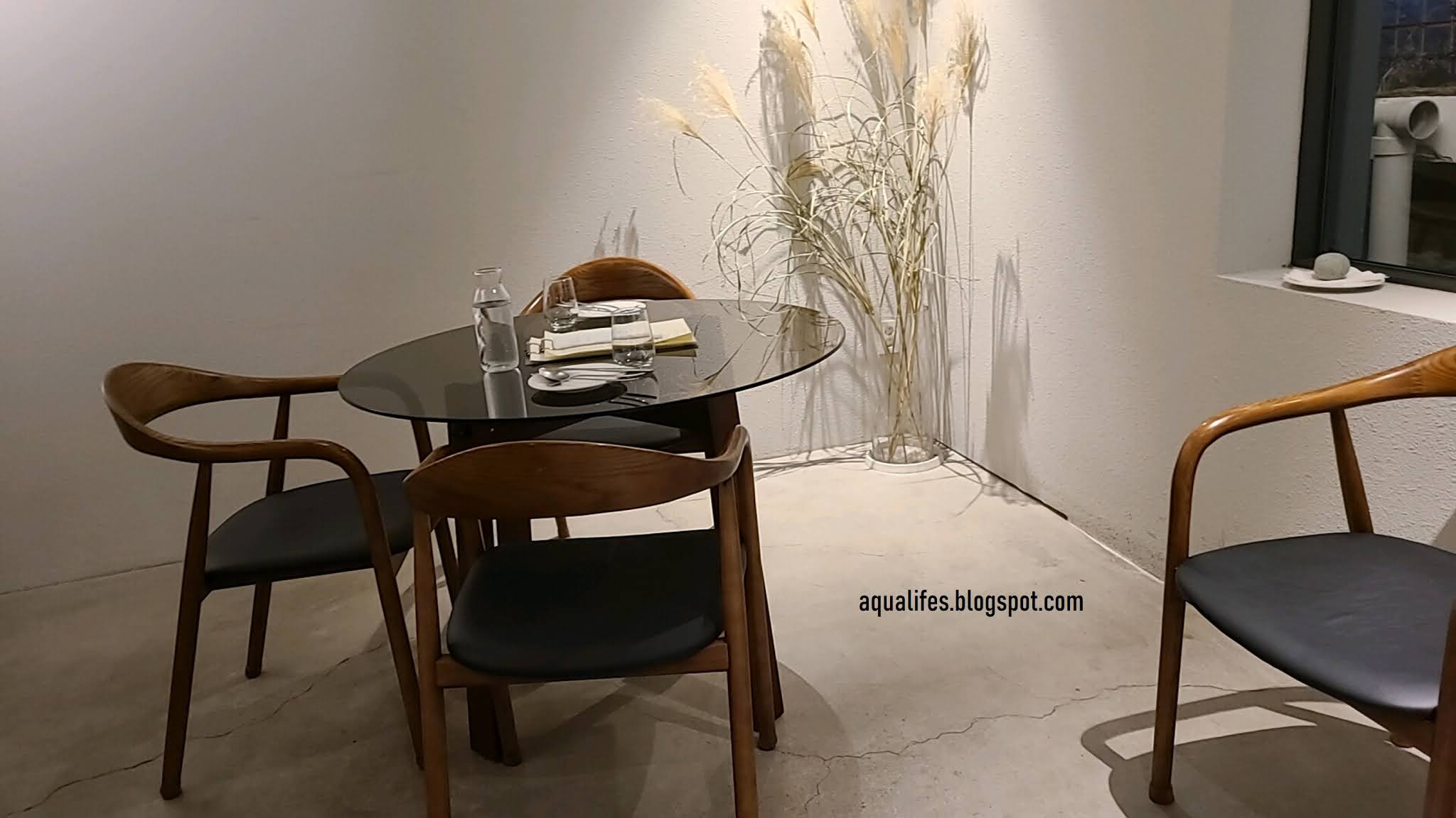 테이블 구성 모습입니다. 2~3인 자리이고 보통 2인 커플 분들이 많이 오시는 모습이었습니다. 분위기가 식사하다보면 자연스럽께 달달해지는 분위기라 소개팅하시는 분들도 많으셨고, 기념일(생일, 결혼기념일, 100일 500일 기념 등)에 방문하시는 분들이 많아 보이였습니다. 조명도 강하지 않고 음악도 강하지 않으면서 은은하고 편안한 분위기가 최대 장점인거 같습니다.